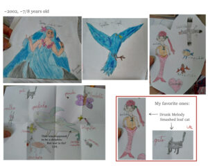 She kept lots of my drawings and here you can laugh with me about my beautiful masterpiece creations: