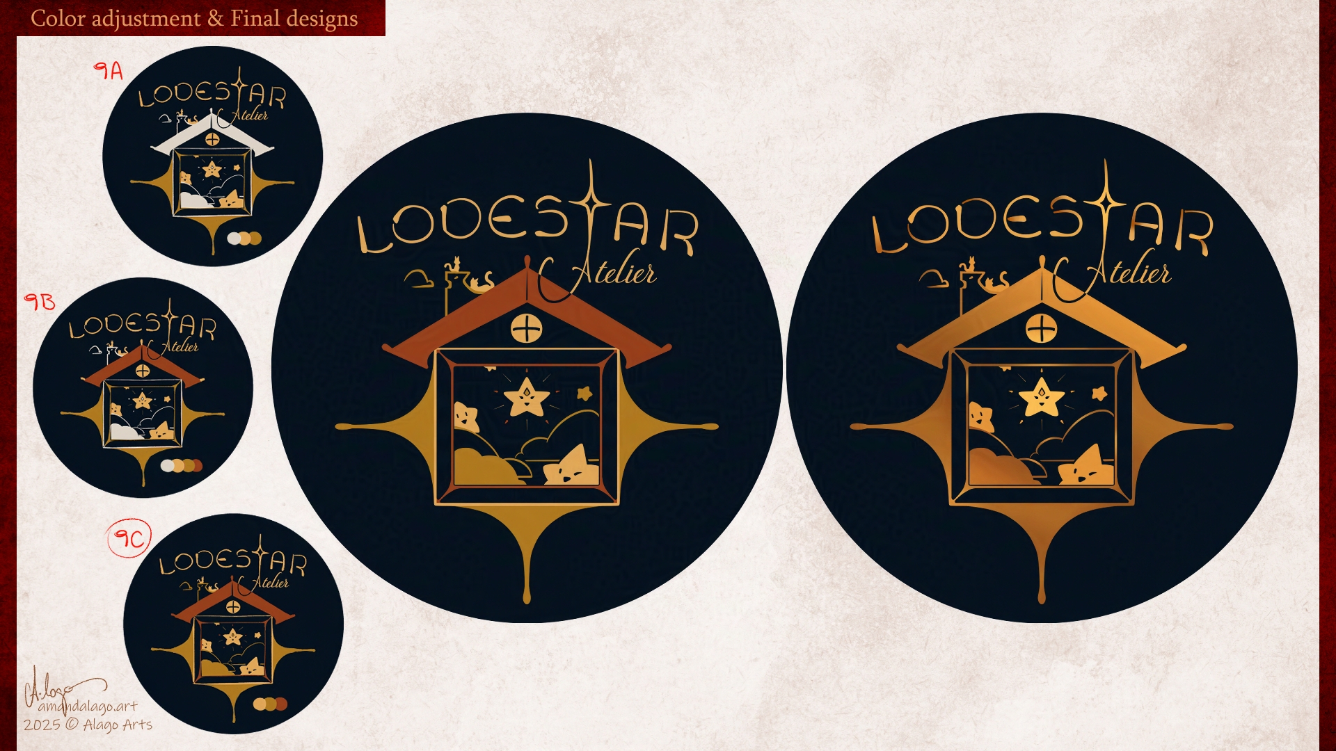 About the logo process, Lodestar Atelier is an independent upcoming gaming company, so I wanted to bring some sort of indie/nostalgic games + handcraft + mystic feeling to it. And of course, I couldn’t help but add teeny tiny cats on top of the chimney.