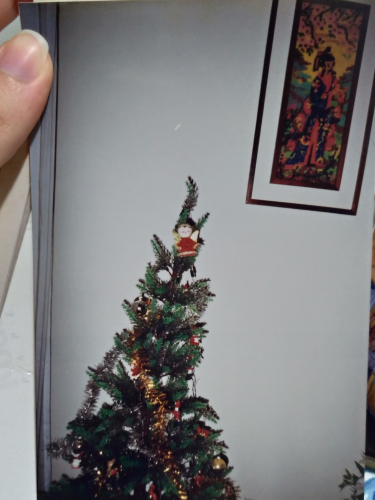 Turned out that half a year later, I found a ~17 years old photo showing our Christmas tree aaand guess what was behind it! Not Santa XD but the gueisha frame!! Well, not exactly a gueisha, because it’s more likely to be an emperor after all. HA. Didn’t notice the mustache, younger me.