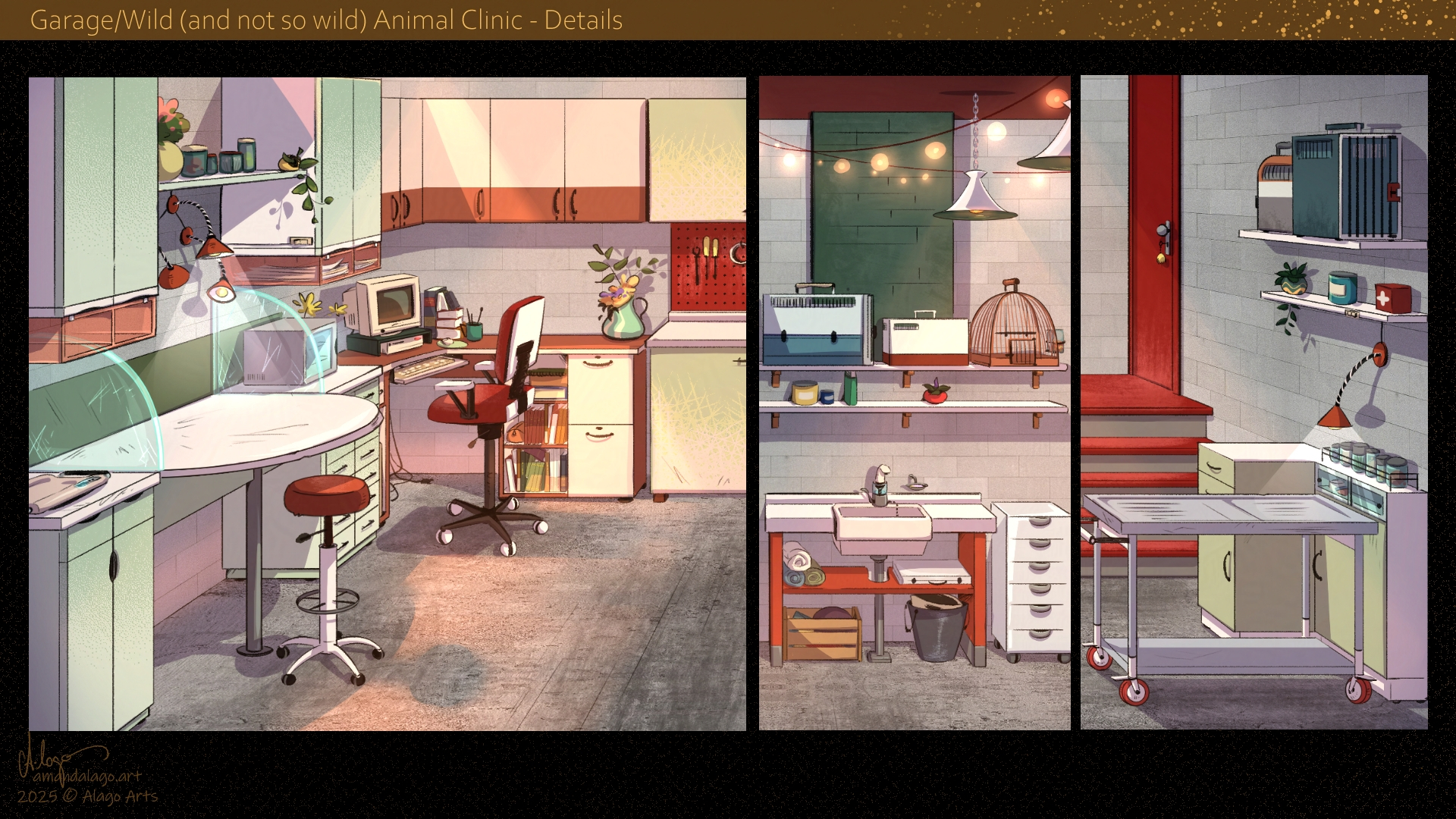 Aaand finally, going out through one of the kitchen’s door there’s an intriguing spot: a Wild Animal Clinic! in the garage!