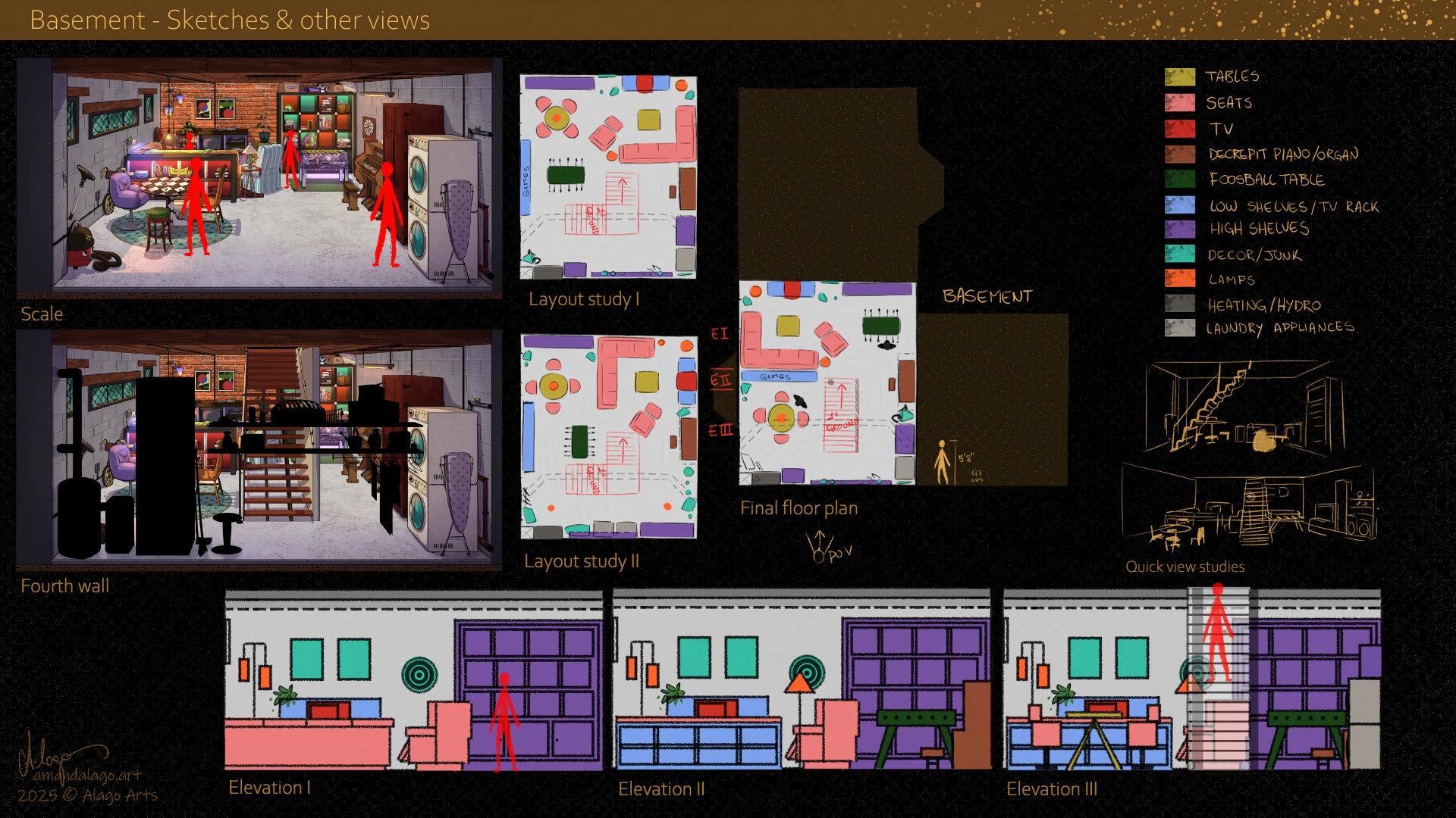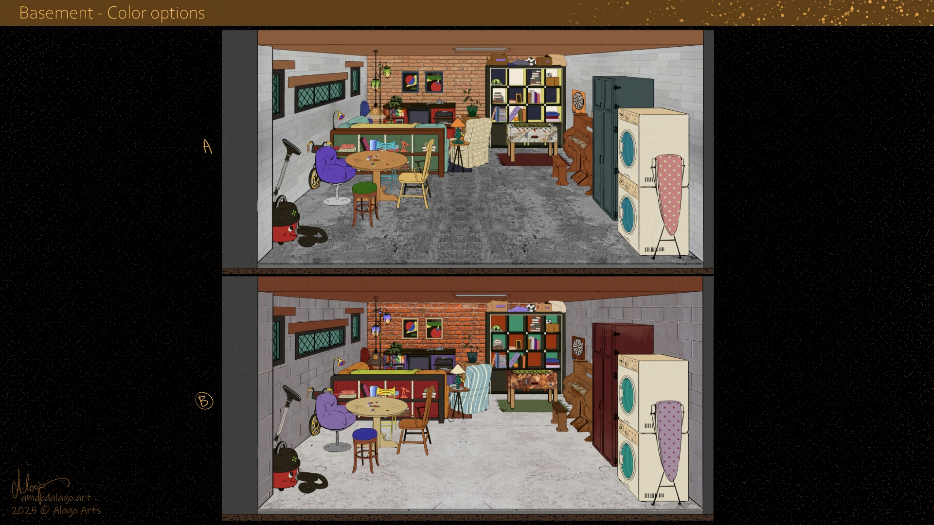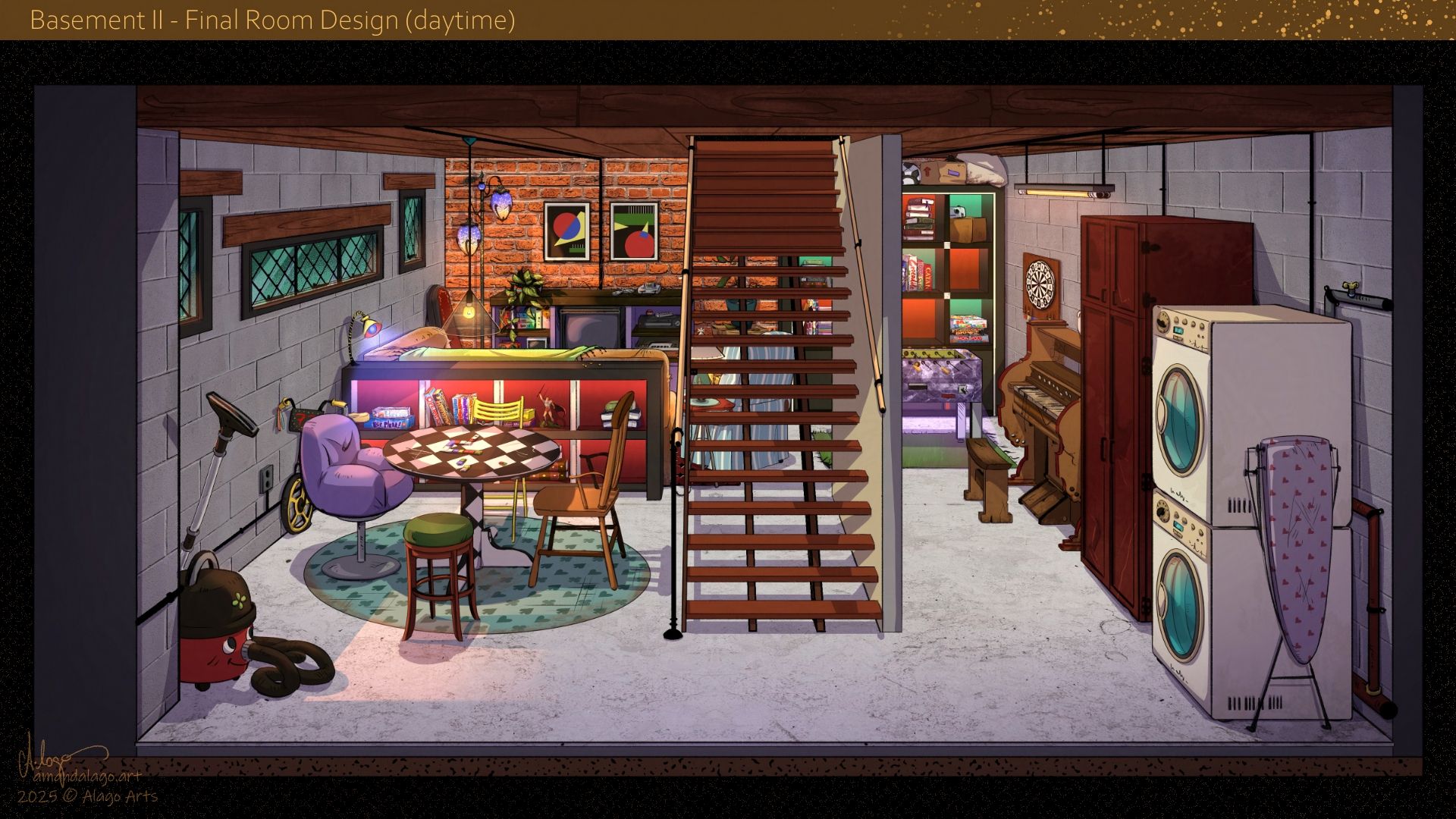 First, going down the living room’s stairs, we enter an organized chaos: the basement.