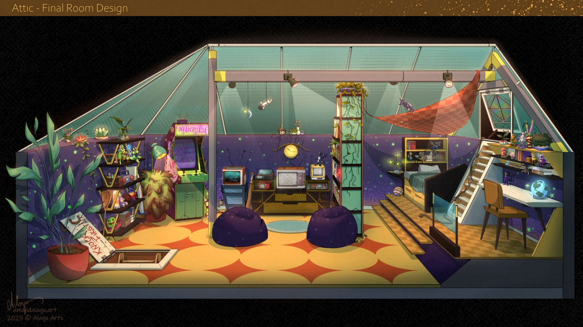 And finally, opening the hatch on the first floor’s hallway, we land in the little nest of a very important character.