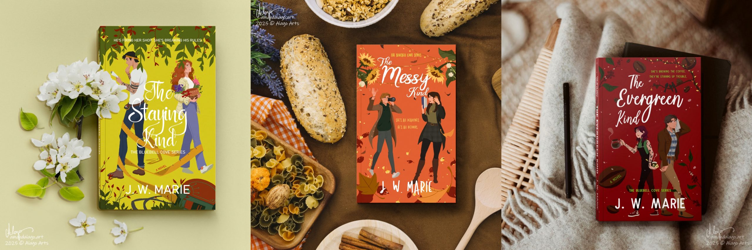 The Blue Bell Cove Series is a book trilogy that I had the immense pleasure to work with Joanna, the creator and writer of these heart-warming, slow burn, 90’s feel stories (my favorite type of romance books by the way).